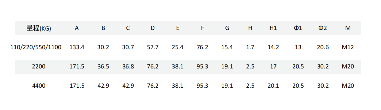- 额定量程:110~4400kg